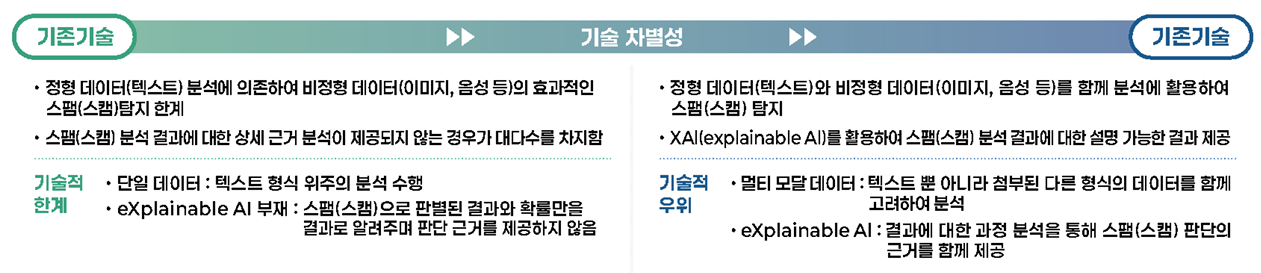 - 기술개요클라우드 웹 기반에서 멀티모달 데이터를 정교하게 분석하여 스팸(스캠) 여부를 판별하고 결과를 제공하는 지능형 플랫폼