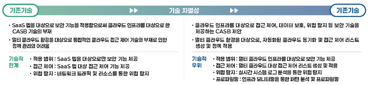 - 기술개요클라우드 내 서비스에 대한 접근 제어, 데이터 보호, 모니터링 및 위협 식별 기능을 제공하는 클라우드 접근 보안 브로커(CASB, Cloud Access Security Broker)