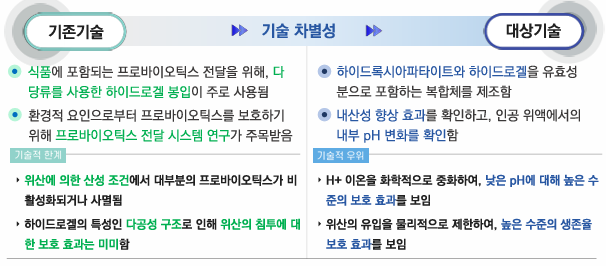 - 기술개요산성 환경에서 프로바이오틱스를 보호하고 전달할 수 있는 복합 물질 제조 방법