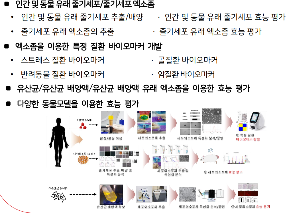 - 적용분야엑소좀 기반 의약품, 건강기능식품, 동물용 의약품