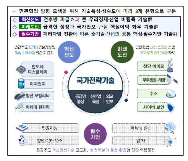 - 중점 육성기술: 12대 국가전략기술 분야 선정/관리