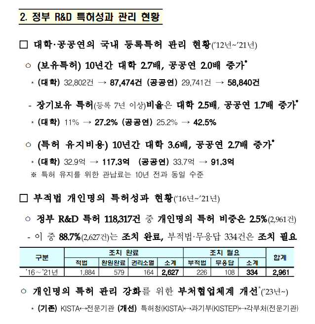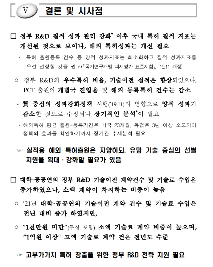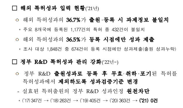 [정책] 2021년도 정부 R&D 특허성과 조사·분석 결과(안)